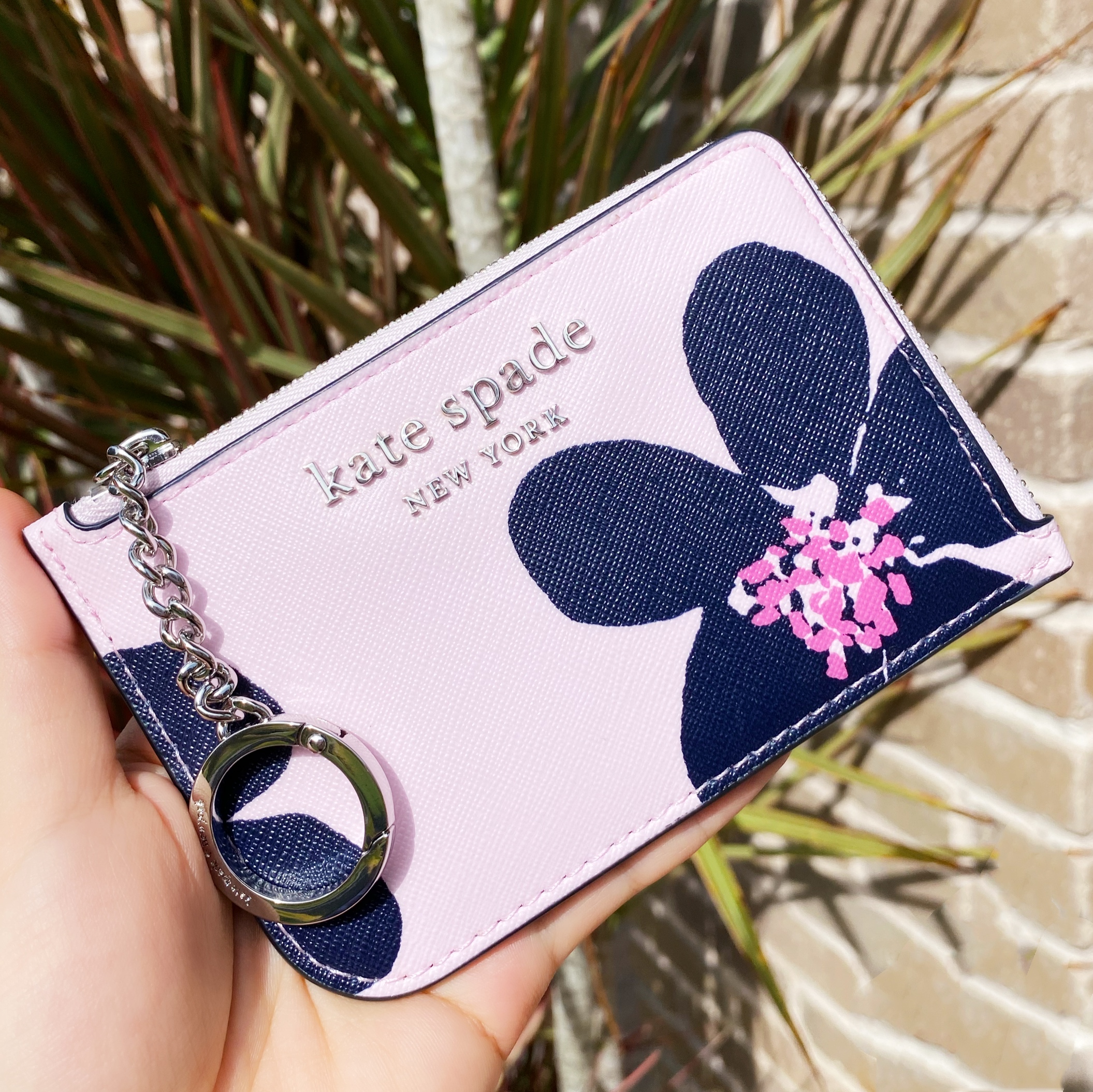 Kate Spade Cameron Card Holder Small Key Ring Wallet Grand Flora Pink